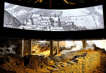 Une quatrième phase de construction se situe au début du 13e siècle. A cette époque, on construit un nouveau palais représentatif de 10 x 13 mètres. Ce grand palais à deux étages a été rattaché par une galerie monumentale à la chapelle. Ces bâtiments grandioses traduisent la volonté des comtes de Vianden de rivaliser, en tant que vassaux directs de l'Empire, avec la maison de Luxembourg.