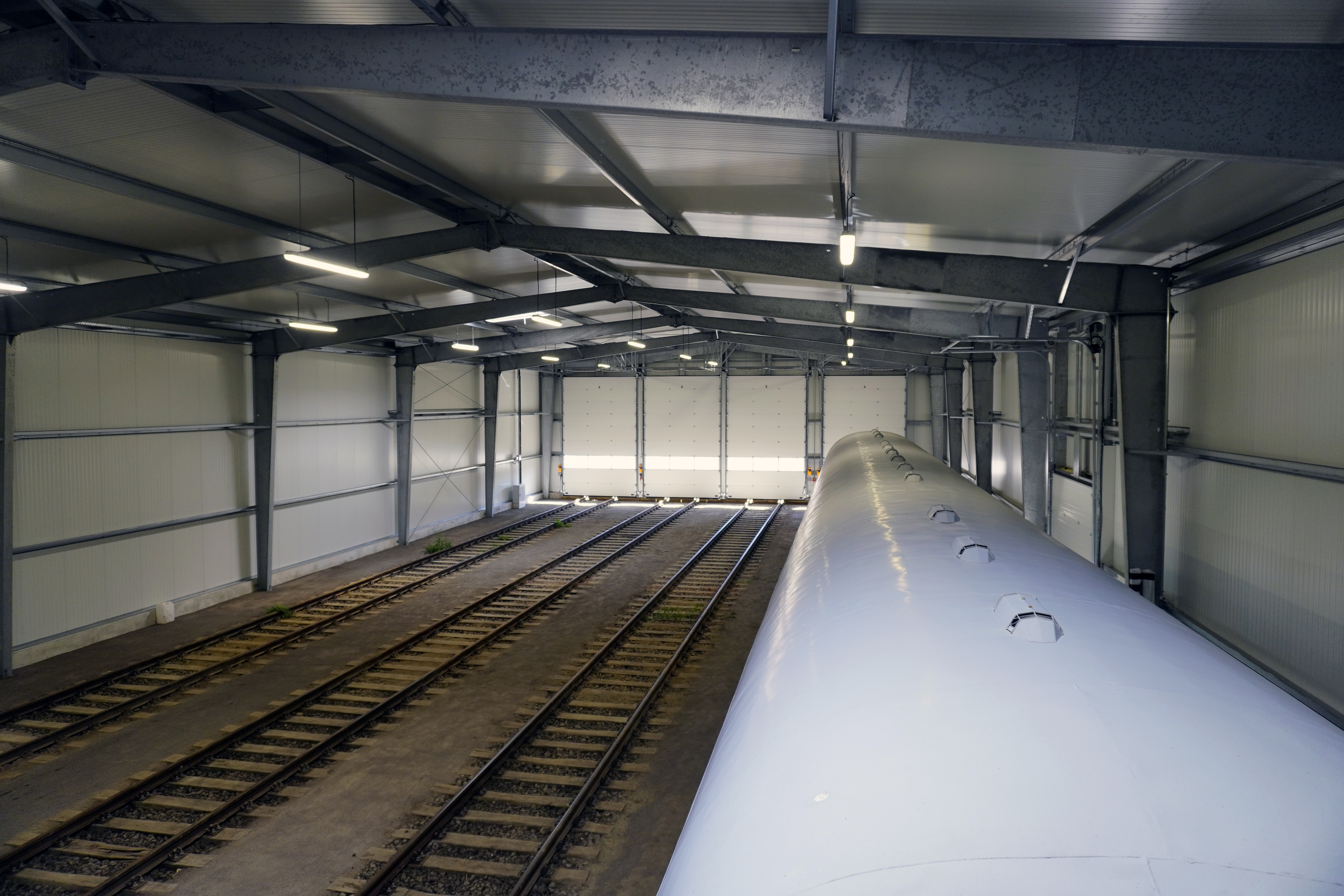 Le hall est d'une longueur totale de stockage de 432 mètres de voies utiles. Il résulte une dimension extérieure du hall de 115m x 20m avec quatre voies de stockage parallèles.